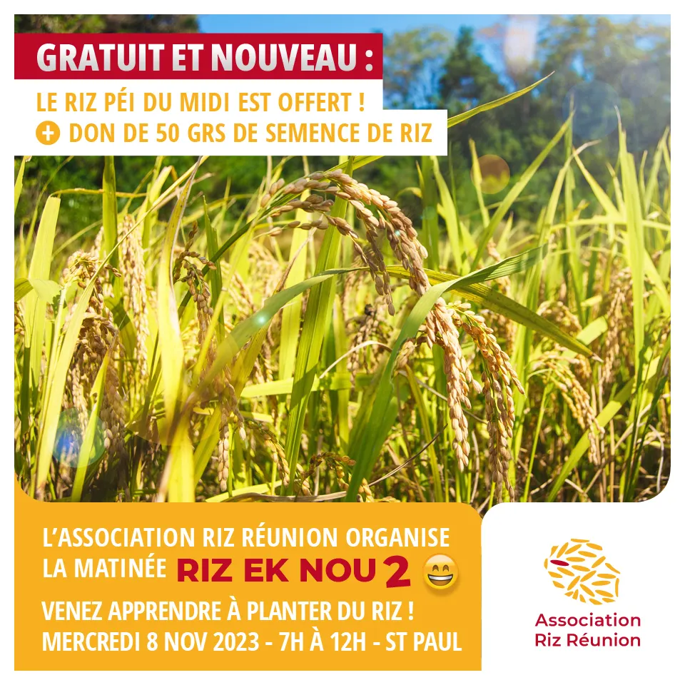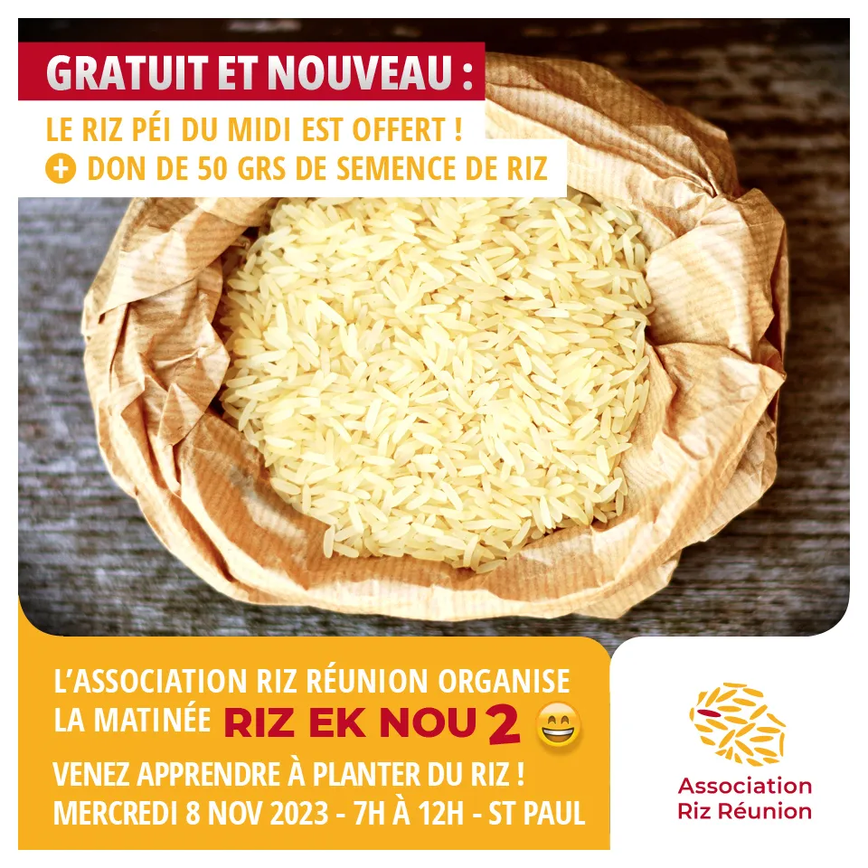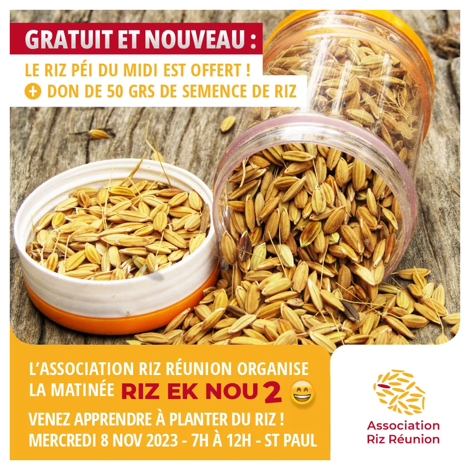 Mais ce n’est pas tout ! Chaque participant recevra un don de 50 grammes de semence de riz de La Réunion. Vous pourrez ainsi mettre en place vos propres parcelles de riz pour votre consommation personnelle.