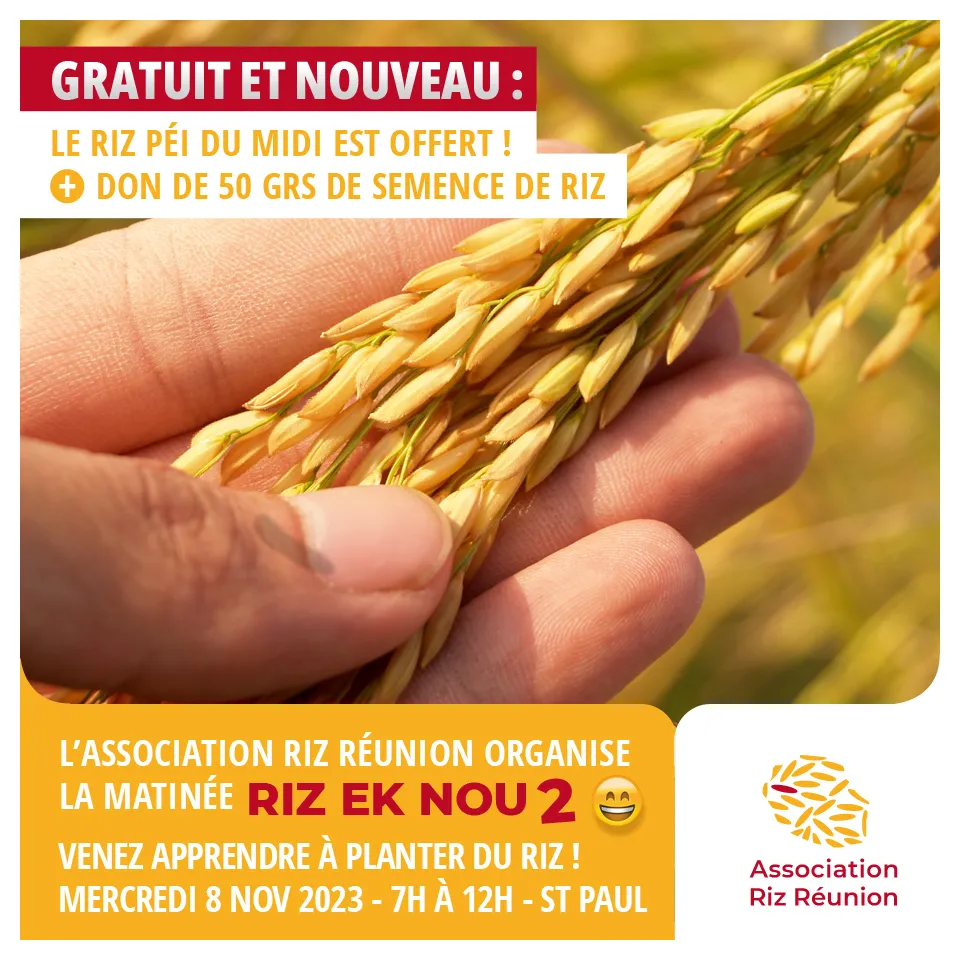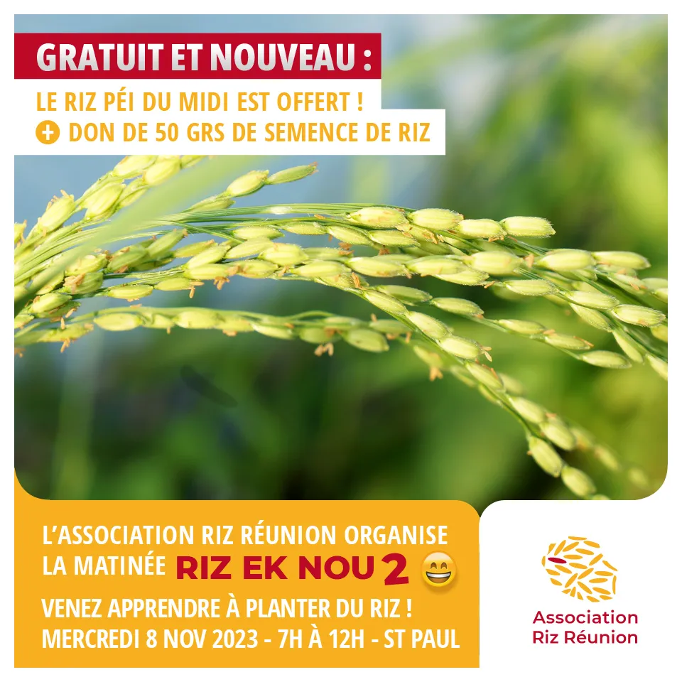 L’association invite chaleureusement tous les passionnés de la culture réunionnaise, les amoureux de la nature et les curieux à se joindre à eux pour une matinée d’apprentissage unique : la plantation de riz à La Réunion.