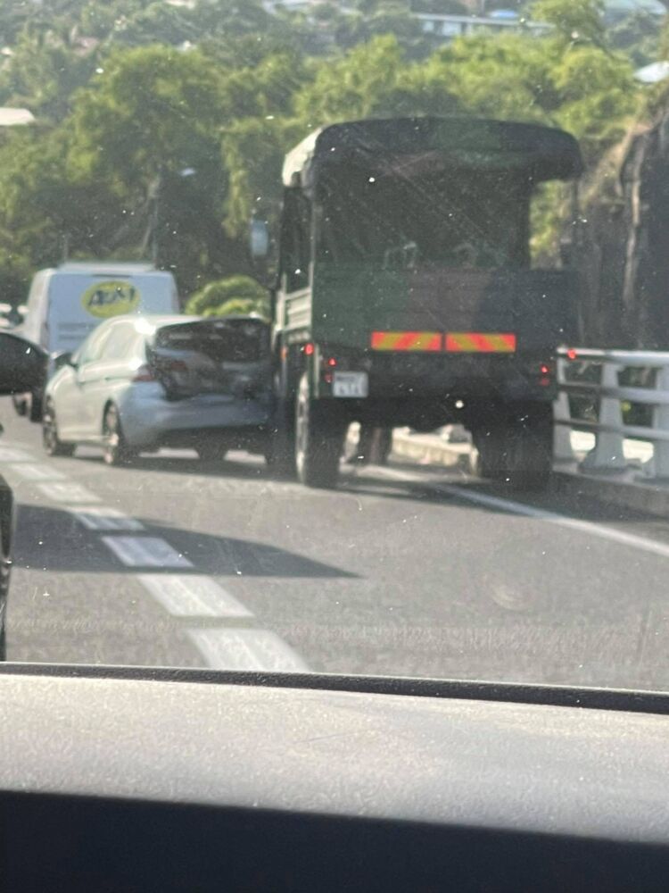 Un second accident s’est produit à Saint-Paul juste après le viaduc. Un camion est entré en collision avec un véhicule léger.