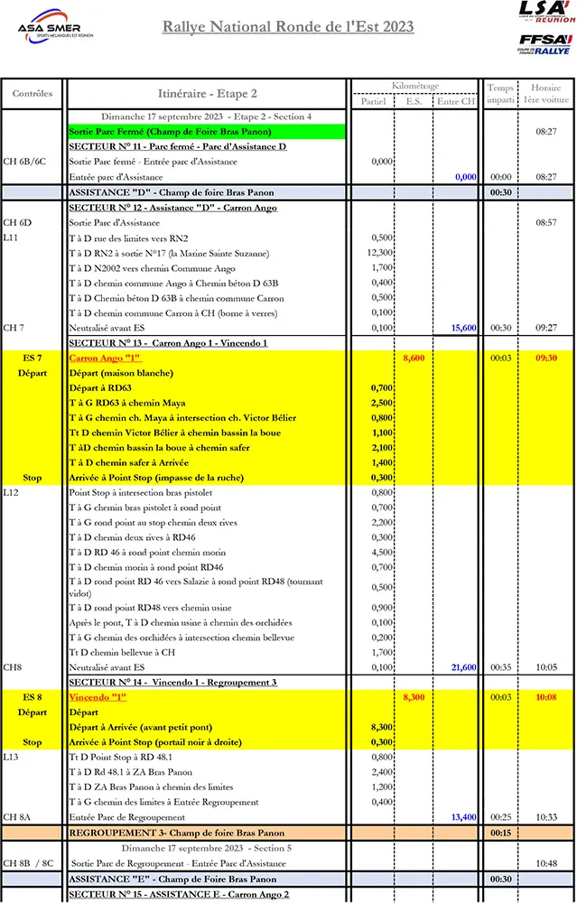 Le lendemain, dimanche 17 septembre, deux autres spéciales CARRON ANGO (Sainte Suzanne) et VINCENDO (Bras Panon) seront à parcourir en 3 fois.