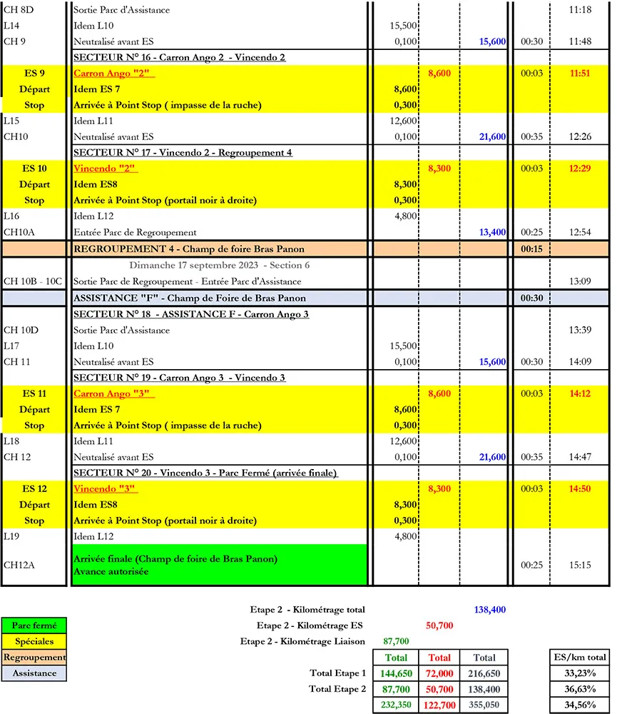 12 Epreuves Spéciales totalisant une longueur de 122,70km, pour 216.650km de liaisons, soit un parcours général de 355.05km.