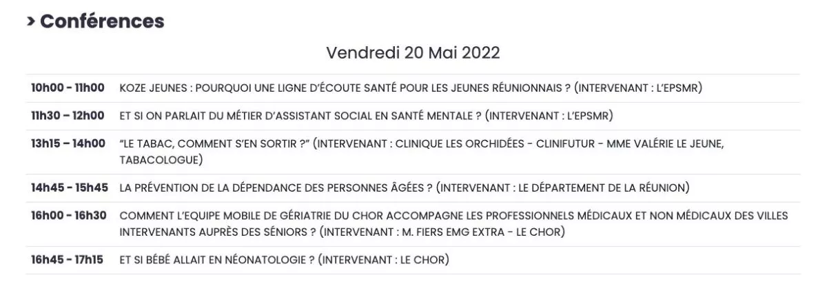 Côté conférence, le Département est intervenu sur le thème de « l’isolement des personnes âgées et le parcours de soins » ce 20/5. Le samedi 21/5, place à « la prévention de la dépendance des personnes âgées » à 14h30 et une table ronde sur les « 1000 premiers jours » à 15h45. Invitant le public à venir nombreux à cette première édition du Salon Run’Santé, le Dr Jean-Marie Virapoullé a rappelé que cet événement est aussi l’occasion de découvrir les avancées accomplies dans notre île en matière de santé : « La Réunion a évolué par rapport à d’autres départements. Notre espérance de vie a progressé plus que partout ailleurs ces 50 dernières années. Ça montre bien qu’ici il y a des soins et des personnels de qualité. Il faut valoriser ce qui est mené et continuer à apporter de meilleure santé à la population ».