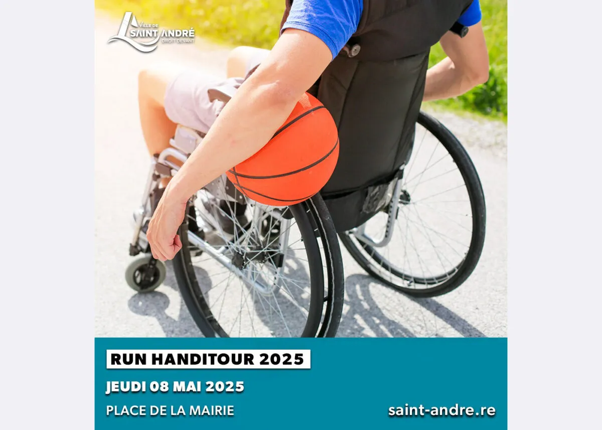 Le Run Handitour 2025 fait étape à Saint-André le 08 mai à midi sur la parvis de l’hôtel de ville ! Organisé par l’Association HandiCapables974, ce tour de l’île de 227 km en 16 étapes à travers 20 communes met à l’honneur les personnes en situation de handicap.