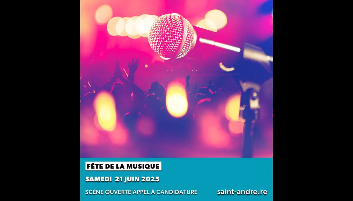 À l’occasion de la Fête de la Musique, la Ville de Saint-André organise une scène ouverte le samedi 21 juin, de 14h00 à 18h00, devant la Mairie.