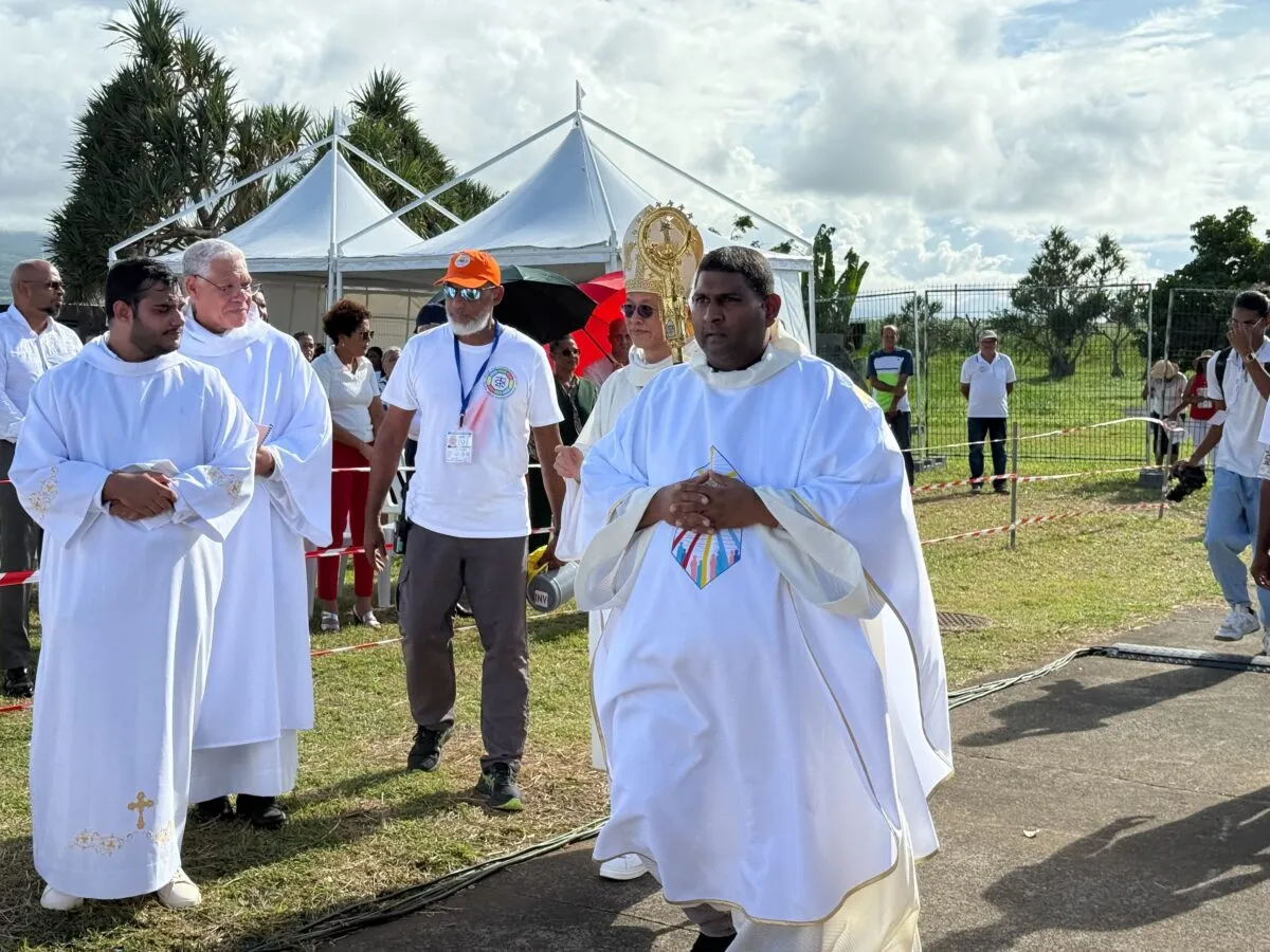 Une messe qui s’est déroulé dès 15 heures au Parc du Colosse à Saint-André; Elle a été célébrée par Monseigneur Pascal Chane Teng (notre photo de Une), évêque de la Réunion, en présence de nombreux curés de la Réunion. Plusieurs milliers de fidèles se sont rassemblés ce dimanche après-midi. Nombre d’entre eux étaient déjà sur place depuis ce matin, arrivés en bus.
