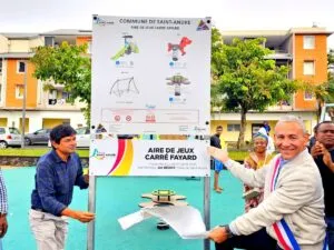 Le maire Joé Bédier a rappelé que cette réalisation s’inscrivait dans un programme global d’aménagement pour tous les quartiers de Saint-André. Le « Carré Fayard » vient compléter le terrain synthétique déjà existant, offrant un cadre sécurisé et convivial pour les jeunes, les moins jeunes, et les passionnés de football.
