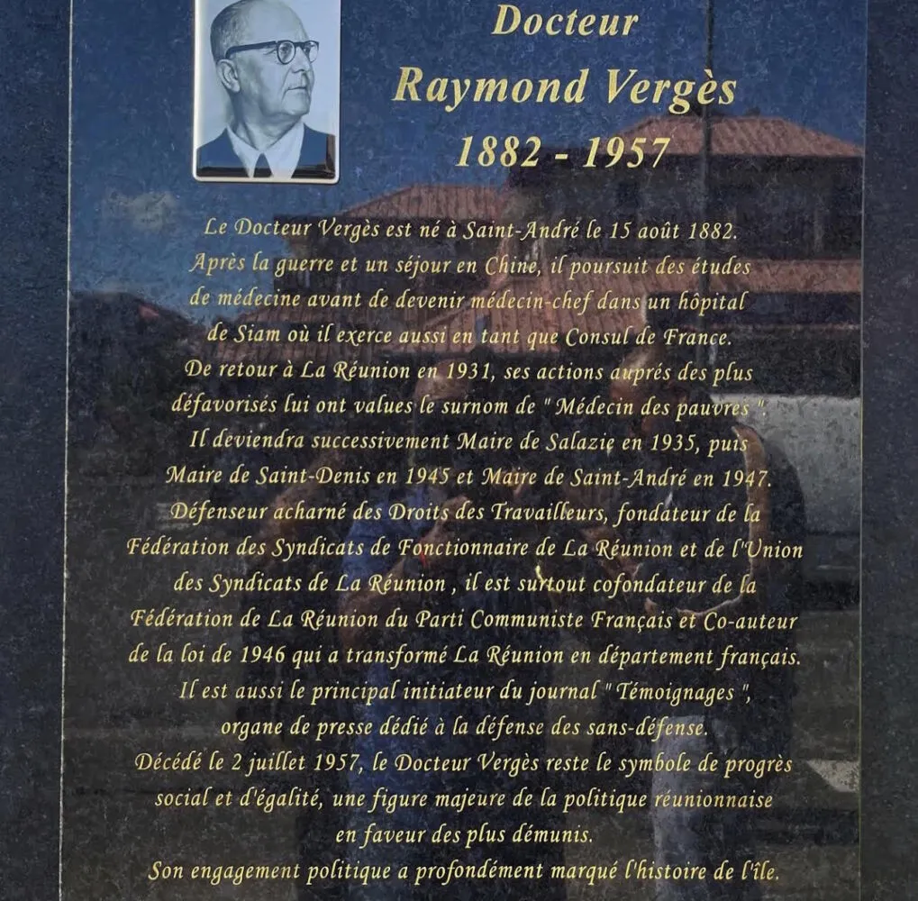 Une stèle installée à proximité du lycée Jean Perrin et une avenue, celle qui passe devant le même établissement scolaire et qui dessert la gare routière. La commune de Saint-André a souhaité rendre hommage au docteur Raymond Vergès, médecin de profession et homme politique d’envergure.