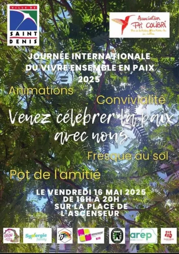 Ce vendredi 16 mai 2025, la Ville de Saint-Denis, en partenariat avec l’association Pti Colibri et de nombreux acteurs associatifs locaux, invite la population à participer à une après-midi de partage, de dialogue et de fraternité à l’occasion de la Journée Internationale du Vivre-Ensemble en Paix.