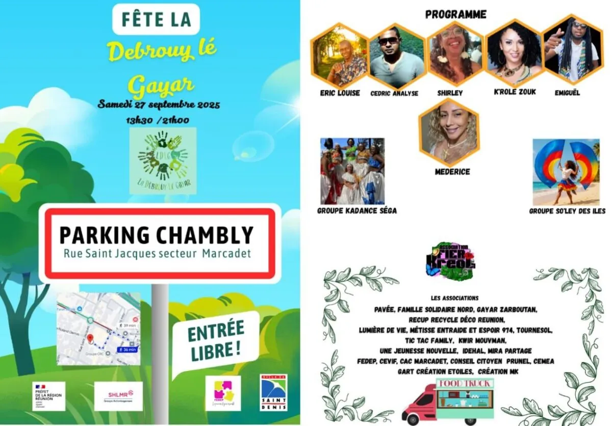 Samedi 27 septembre 2025, 13h30–21h00, la fête « Debrouy lé Gayar » prend ses quartiers au parking Chambly, rue Saint Jacques (secteur Marcadet). Entrée libre.