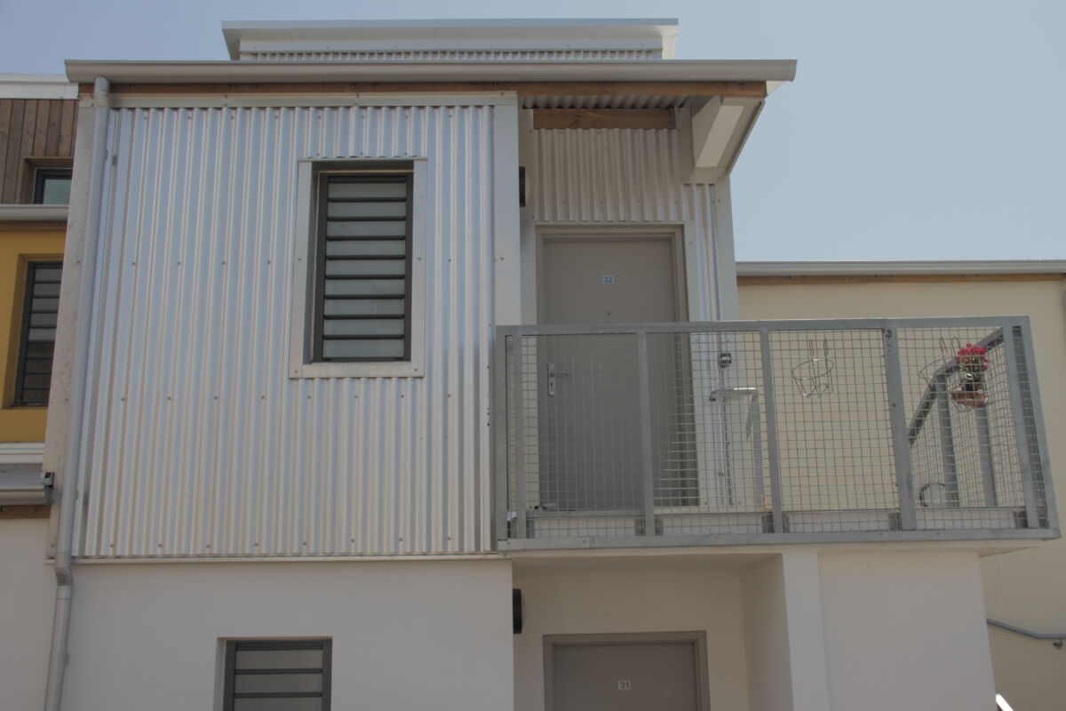 Baptisée du nom d’un fleuve africain, la résidence Jubba se distingue par son architecture singulière, évoquant de petites maisons de ville avec jardinets privatifs. Construite avec des matériaux naturels tels que le bois, la tôle et le béton, elle répond à des normes environnementales strictes. Les logements sont conçus pour favoriser la régulation thermique, notamment grâce à des dispositifs de réflexion de la lumière du soleil, permettant ainsi de limiter les dépenses énergétiques.