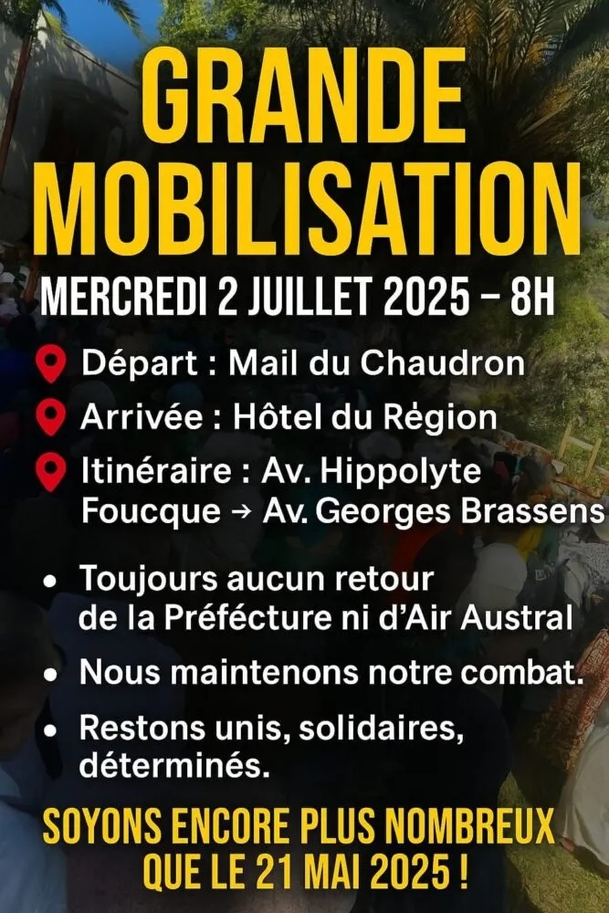 Les manifestants réclament également « l’ouverture d’une ligne directe entre La Réunion et Moroni, sans passer par Mayotte, » pour « désenclaver la diaspora comorienne et faciliter les déplacements familiaux et professionnels. »