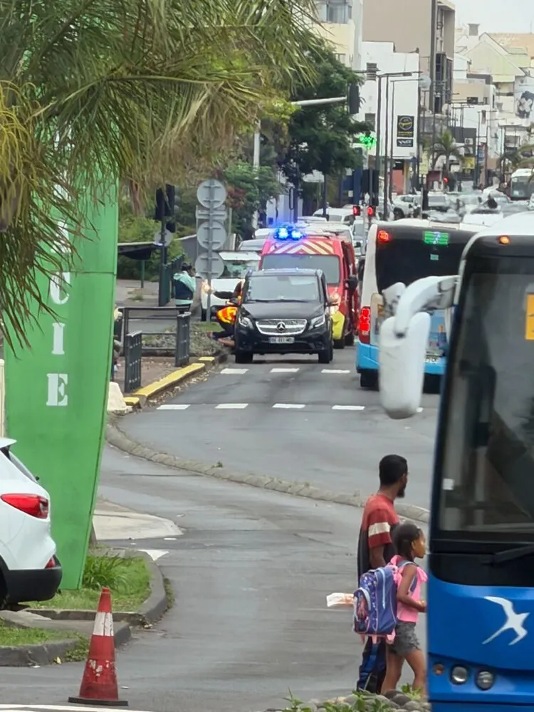Une cycliste vient d’être renversée par un minibus à Champ Fleuri, près du Trésor public, en direction de Sainte-Clotilde.