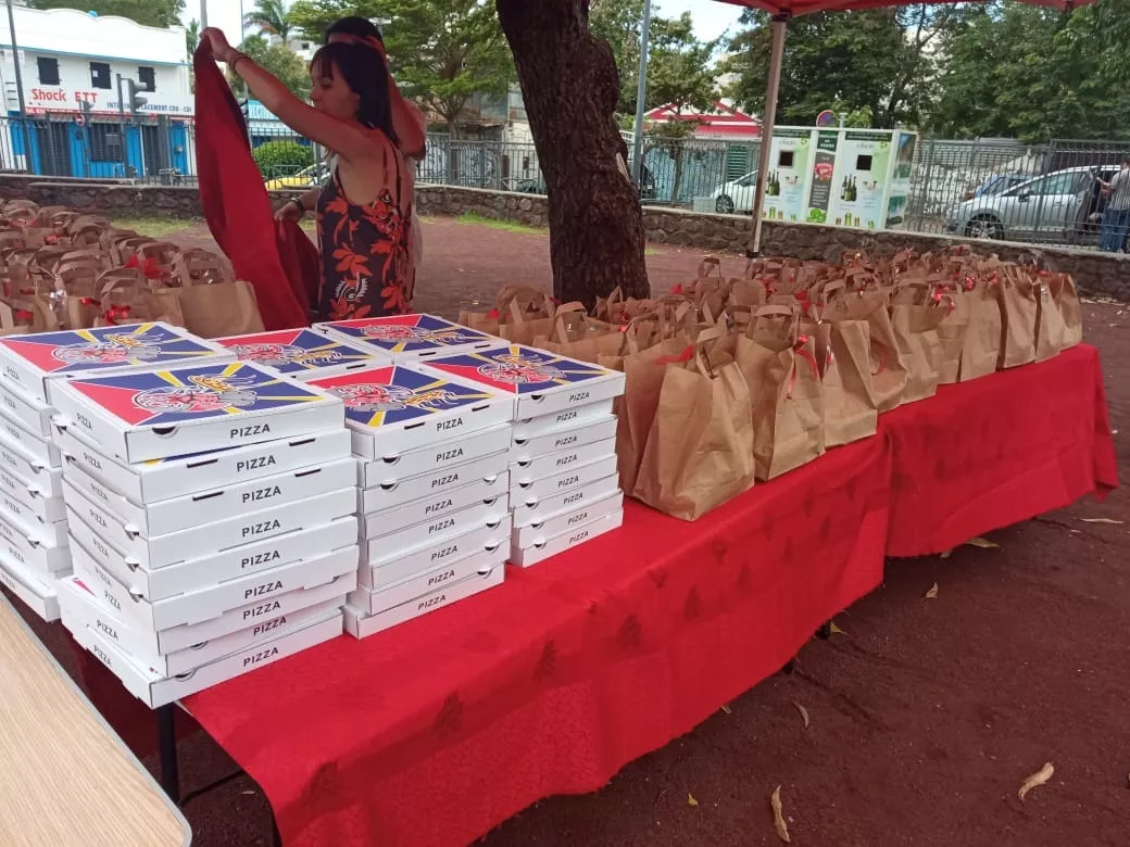 Avec l’aide de Thierry Tirel, président de l’Association Coup de Pouce, en partenariat aussi avec Asso Espoir qui a offert 50 pizzas(Pizza Di Mulano), Jessy Gerbandier qui offert des desserts, Cindy Didine qui a fait et offert des gâteaux pattes.