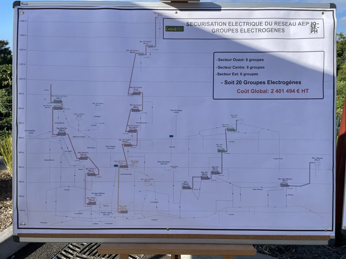 La pose de groupes électrogènes pour sécuriser les stations de pompage face aux coupures électriques. Sur Saint-Philippe et Saint-Joseph, 20 groupes seront installés d’ici l’an prochain, pour un coût de 2,5 millions d’euros.