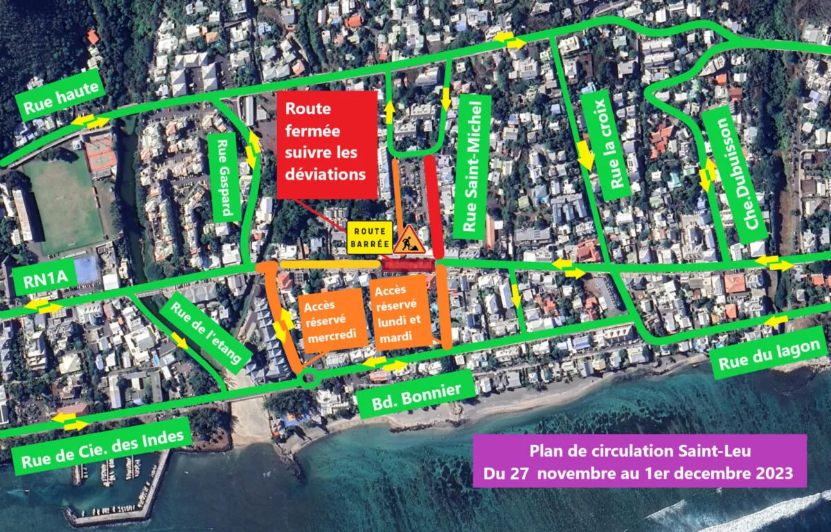 Dans le cadre de la modernisation du réseau d’eaux usées dans le centre-ville de Saint-Leu, voici les détails des travaux programmés pour la semaine prochaine: