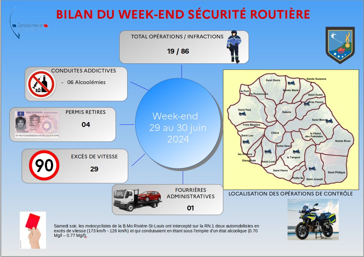 Voici le bilan d’activité sécurité routière de l’ E.D.S.R pour le week-end du 29 au 30 juin 2024.