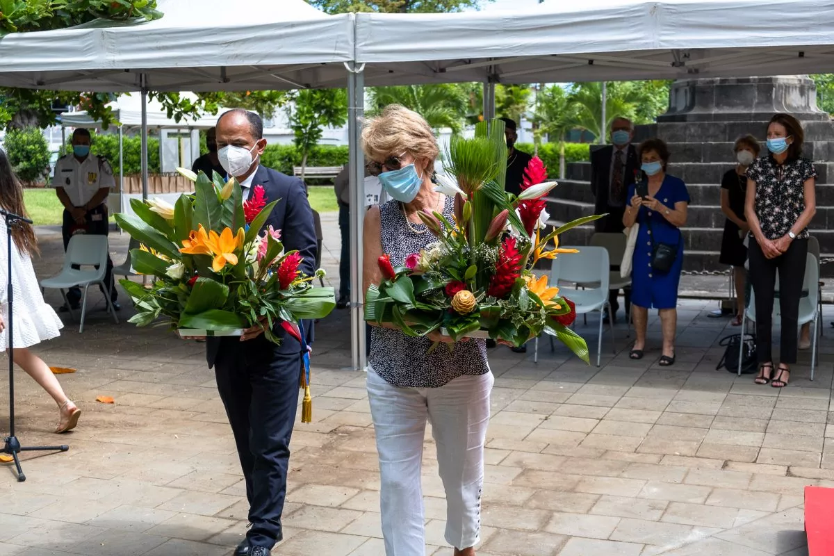À la fin de son discours, Jacques HAZAN, ancien président de l’Association Juive de La Réunion, désormais membre de cette structure, prend la parole. Idriss ISSOP-BANIAN, président du Groupe de dialogue inter-religieux, s’exprime à son tour. Ce moment de recueillement se termine par un dépôt de gerbes au pied de la stèle commémorative de la libération du camp d’AUSCHWITZ. Cette cérémonie est également marquée par la performance artistique de BELLY.