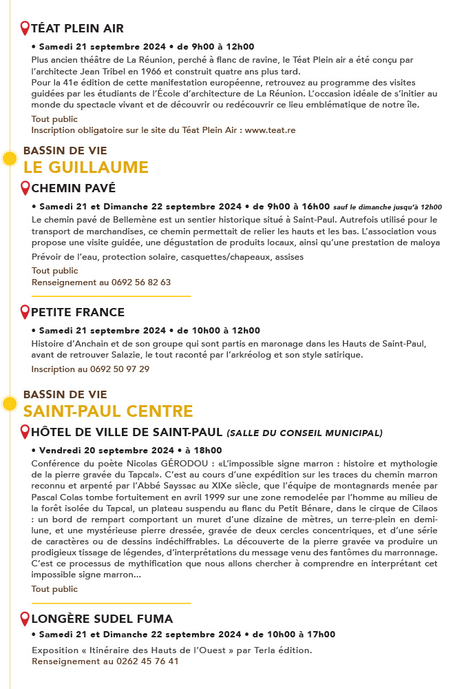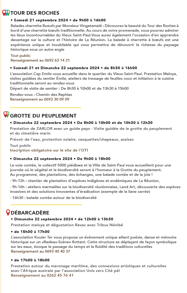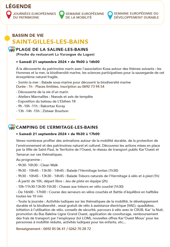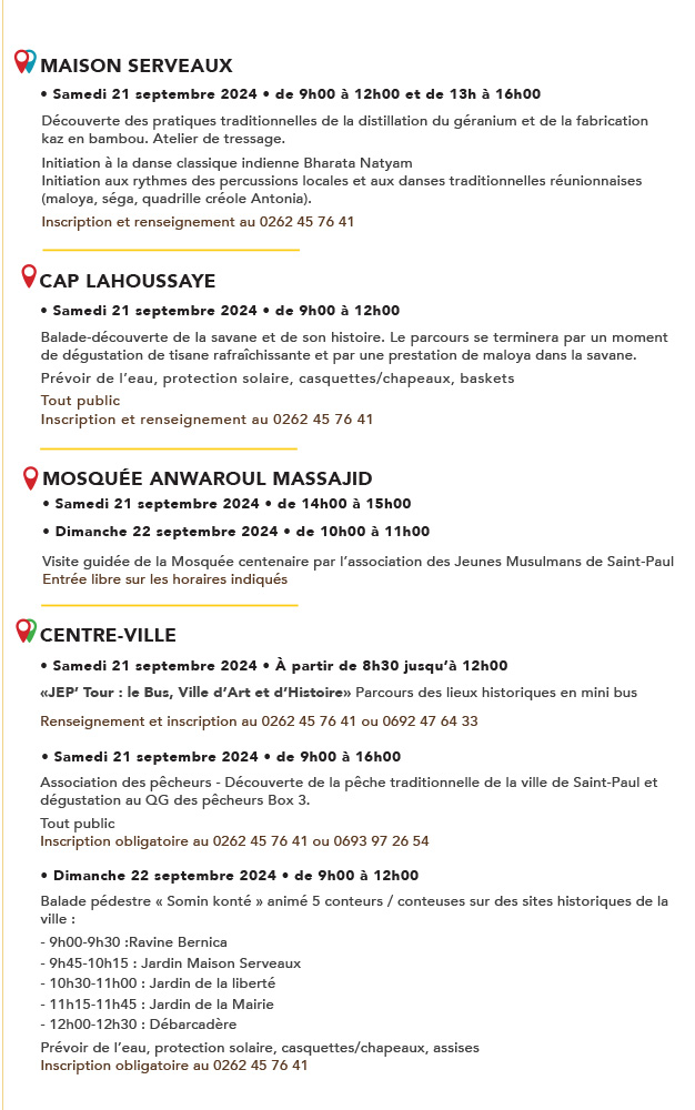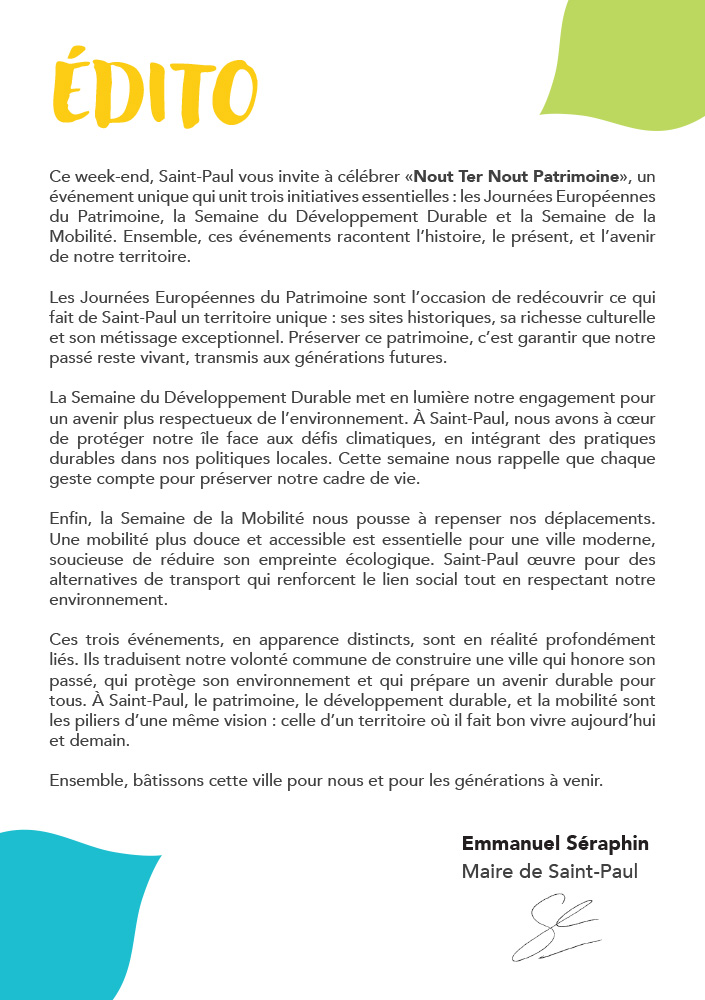 Ce week-end, Saint-Paul vous invite à célébrer «Nout Ter Nout Patrimoine», un événement unique qui unit trois initiatives essentielles : les Journées Européennes du Patrimoine, la Semaine du Développement Durable et la Semaine de la Mobilité.