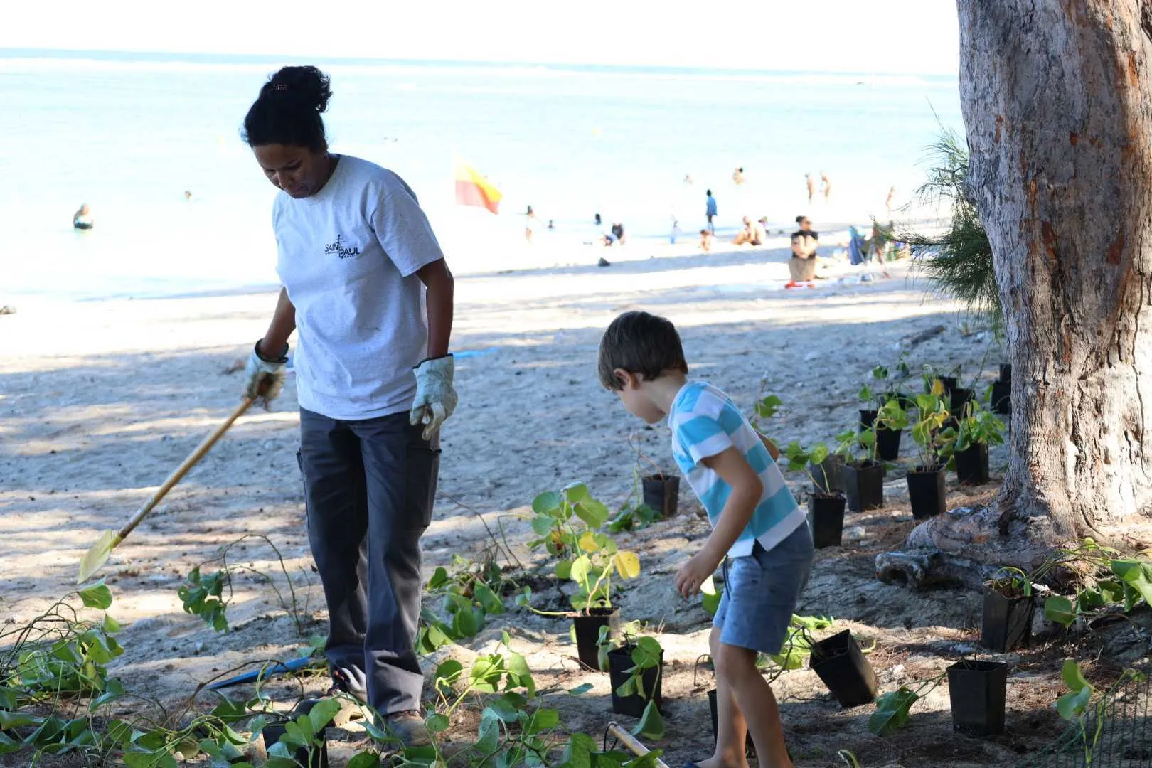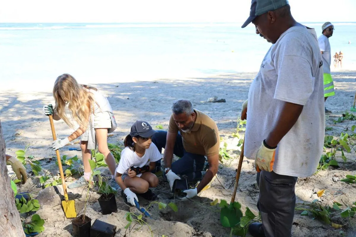 Ce mercredi matin, la plage de l’Hermitage avait des airs d’école à ciel ouvert. Sous les filaos, une centaine d’enfants, accompagnés de leurs animateurs et de l’équipe municipale, se sont retroussés les manches dans le cadre de la journée Uniday, organisée cette année autour du climat.