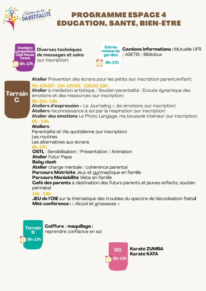 L’événement sera ponctué de diverses animations, stands et ateliers abordant des thématiques telles que l’éducation, la prévention, la grossesse et le bien-être familial. Des professionnels et des associations locales seront présents pour échanger avec les participants et proposer des ressources adaptées.