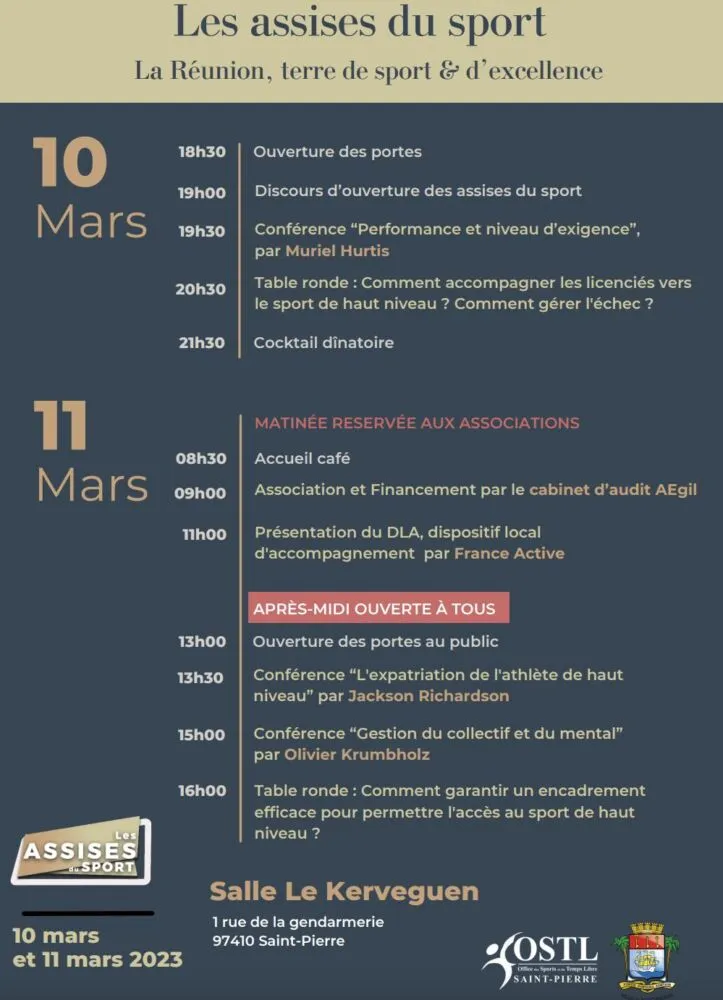La Ville de Saint-Pierre et l’Office des Sports et du Temps Libre (OSTL) vous invitent à réfléchir au sport de demain à l’occasion des assises du sport 2023 :