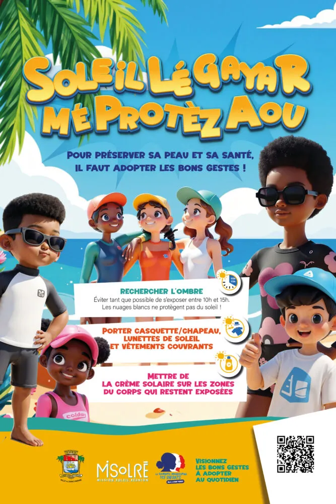 Le Conseil Municipal des Enfants (CME) de Saint-Pierre, en partenariat avec la Ville de Saint-Pierre, a mis en avant un enjeu de santé publique avec une campagne de sensibilisation sur les dangers du soleil. Leur message est clair : « Soleil lé gayar mé protéz a ou ».
