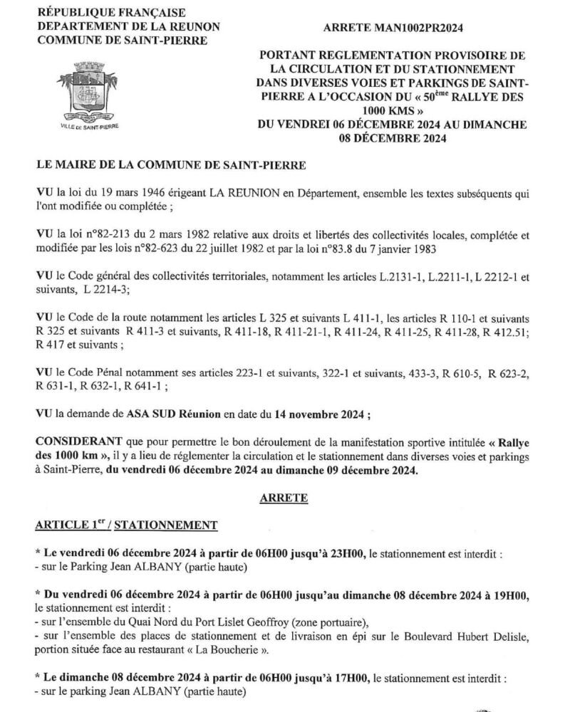 À l’occasion du Rallye des 1000 km, des restrictions temporaires de stationnement et de circulation seront mises en place afin d’assurer la sécurité des participants, des spectateurs, et le bon déroulement de l’événement. Voici les détails :