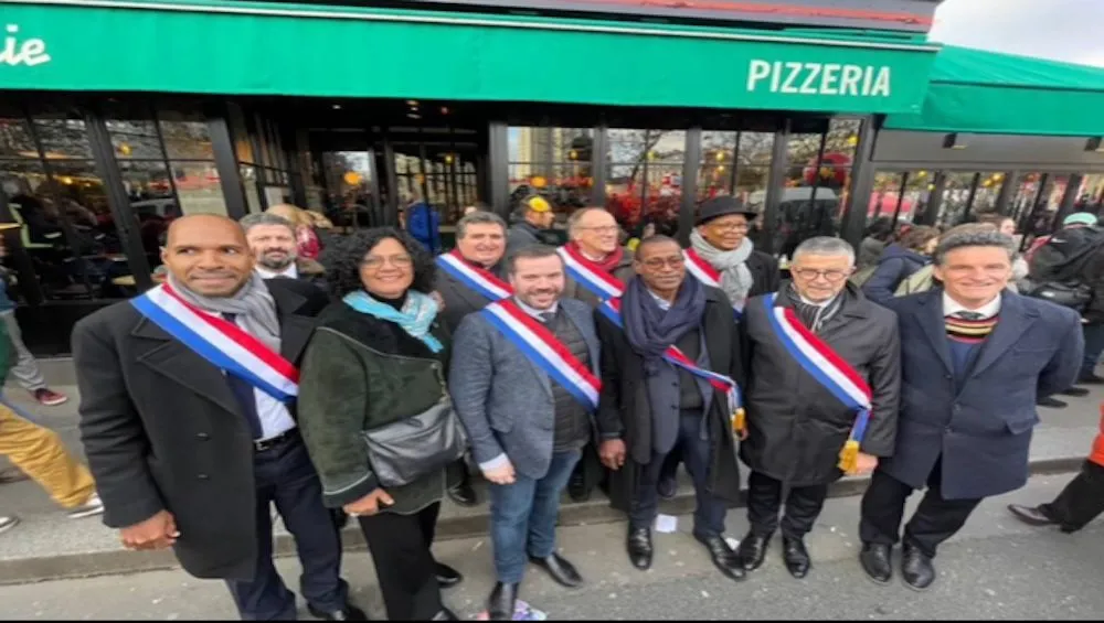 La députée Nathalie Bassire avec les collègues de son groupe lors du défilé du 31 janvier à Paris.
