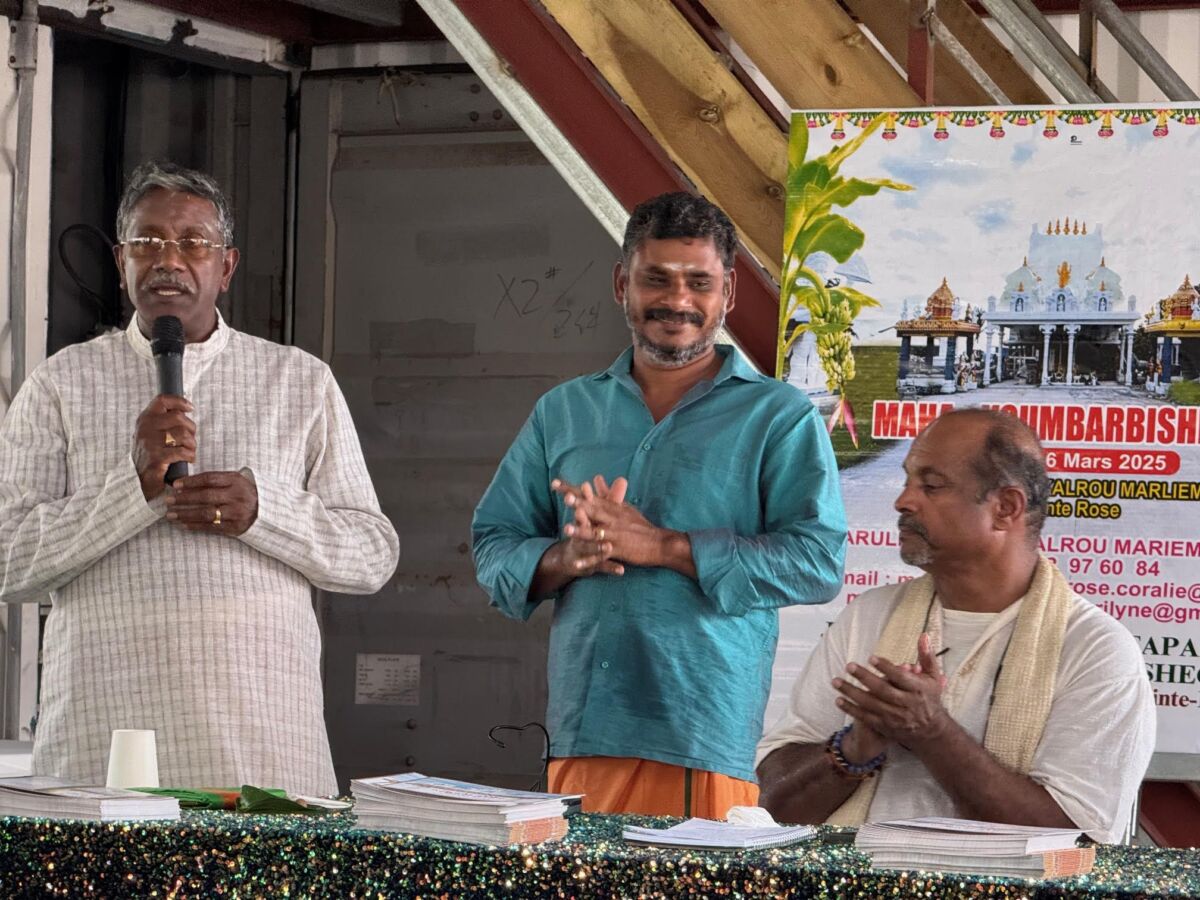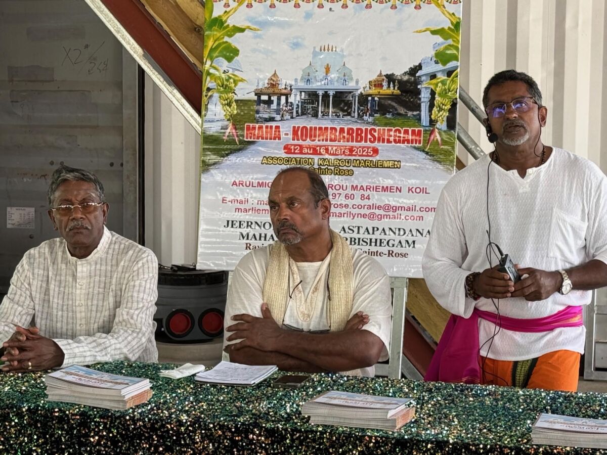 Après la présentation au public, la partie religieuse va démarrer ce mercredi 12 mars, avec le début des cérémonies du Mahâ Kumbabishegam, cérémonies de purification destinée à sanctifier les structures du temple et les divinités. Comme l’a expliqué Serge Ajaguin-Soleyen, « ce puissant rituel hindou pratiqué dans les temples est censé homogénéiser, synergiser et unir les pouvoirs mystiques de la divinité. Plusieurs rituels constituent le Mahâ Kumbabishegam qui dure 5 jours. La direction et les membres de l’association Kalrou Marliémen invitent, outre les fidèles, le public à venir nombreux assister aux cérémonies du Mahâ Kumbabishegam.