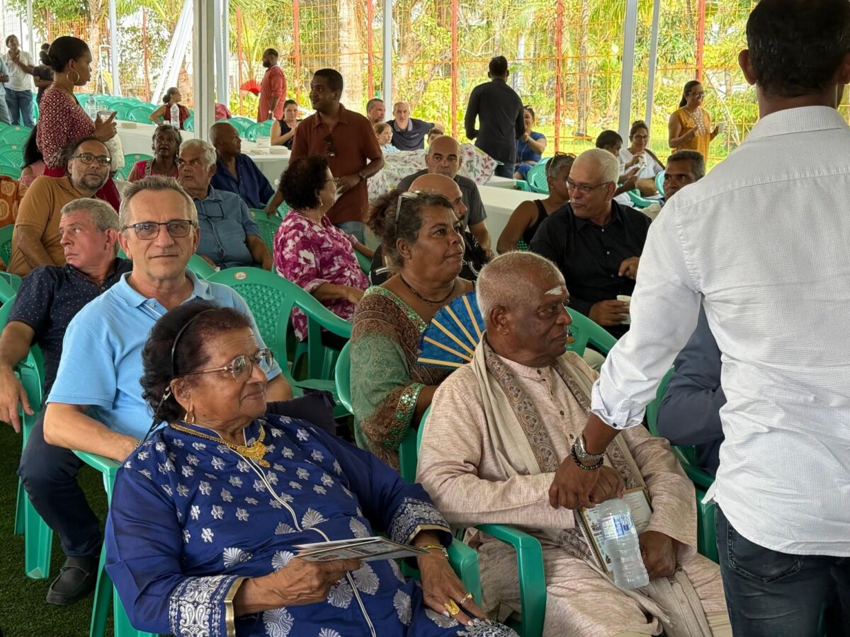 Plusieurs dizaines de personnes parmi lesquels madame Marie-Ange Narayanin (née Naralingom, épouse de feu Noël Narayanin), son frère Emilien Naralingom, ainsi que des élus (Michel Vergoz, maire de Sainte-Rose; Patrick Lebreton, maire de Saint-Joseph, 1er vice-président de la Région et président de l’IRT; Dominique Panamballom, 1er vice-président de la Cirest; Pierrick Robert, président de la CCIR…), le curée de la paroisse de Sainte-Rose, les présidents de quelques temples tamouls et des personnalités civiles, ont pu assister à la présentation de l’histoire de ce temple familial devenu au fil des années un véritable joyau du patrimoine cultuel et culturel de la Réunion. Un temple situé à Sainte-Rose, plus précisément à la Ravine Glissante, en face de la balance cannes (une ancienne usine sucrière).