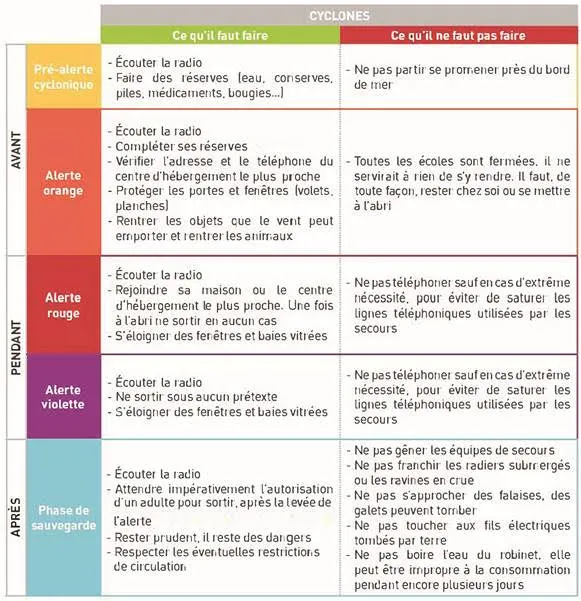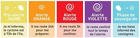 Au total, on compte 5 alertes différentes lors de l’arrivée d’un cyclone :
