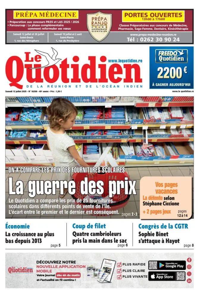 Températures : Saint-Denis 20°/27°, Saint-Pierre 19°/26°, Cilaos 10°/20°, Plaine-des-Palmistes 11°/17°, Maïdo 6°/14°