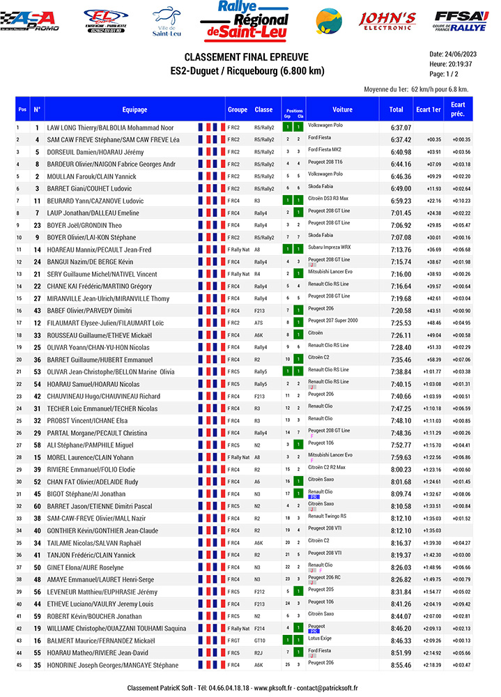 Félicitations à Olivier Chan Fat et son copilote Rudy Adélaïde qui terminent 30ème du classement.