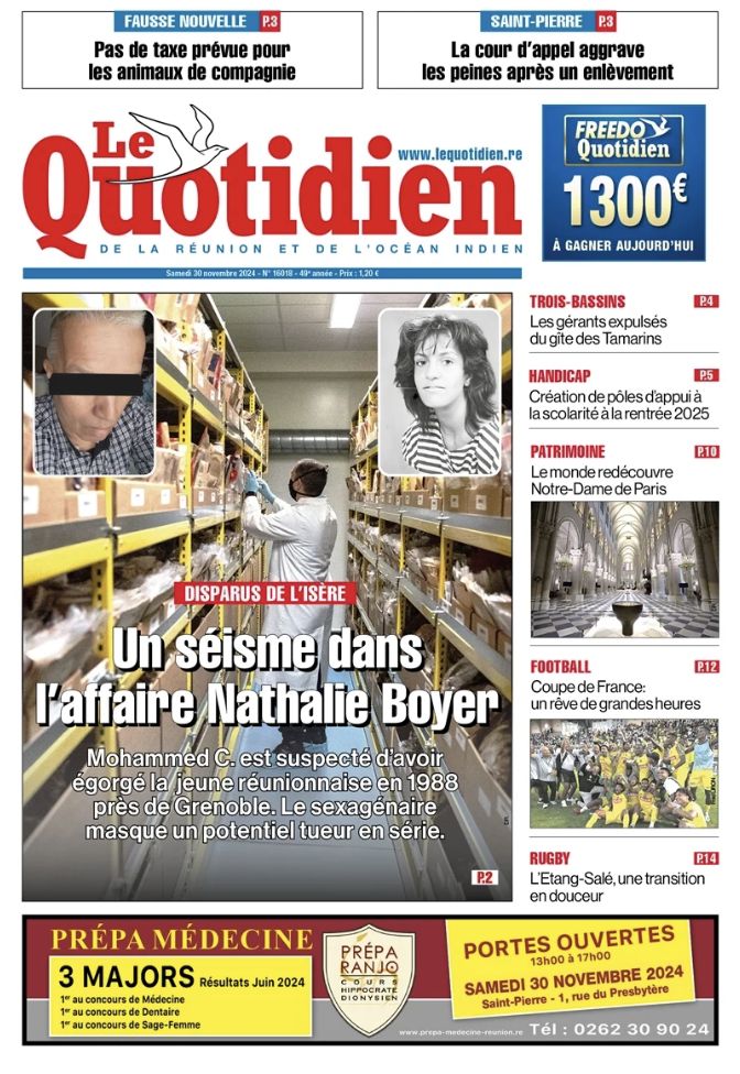 •Téléthon 2024 : Ce week-end, les Réunionnais participent à la 38ᵉ édition du Téléthon. De nombreuses animations sont organisées sur l’île, avec un village principal situé au Moufia, à Saint-Denis.