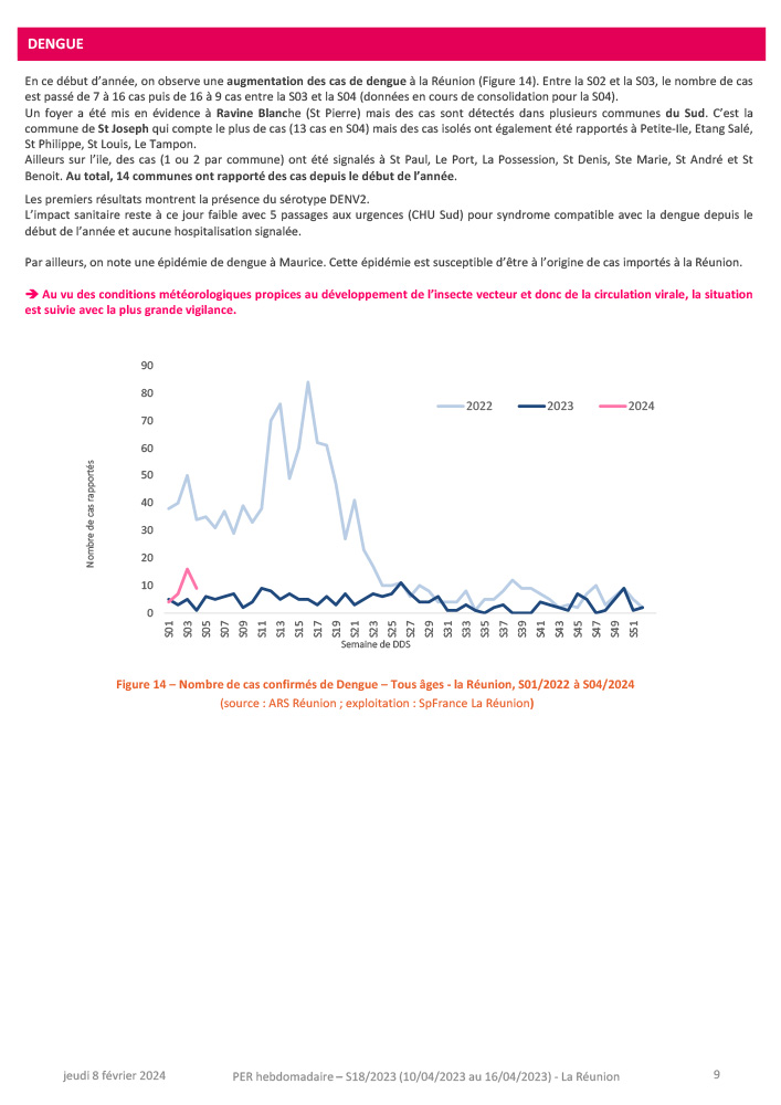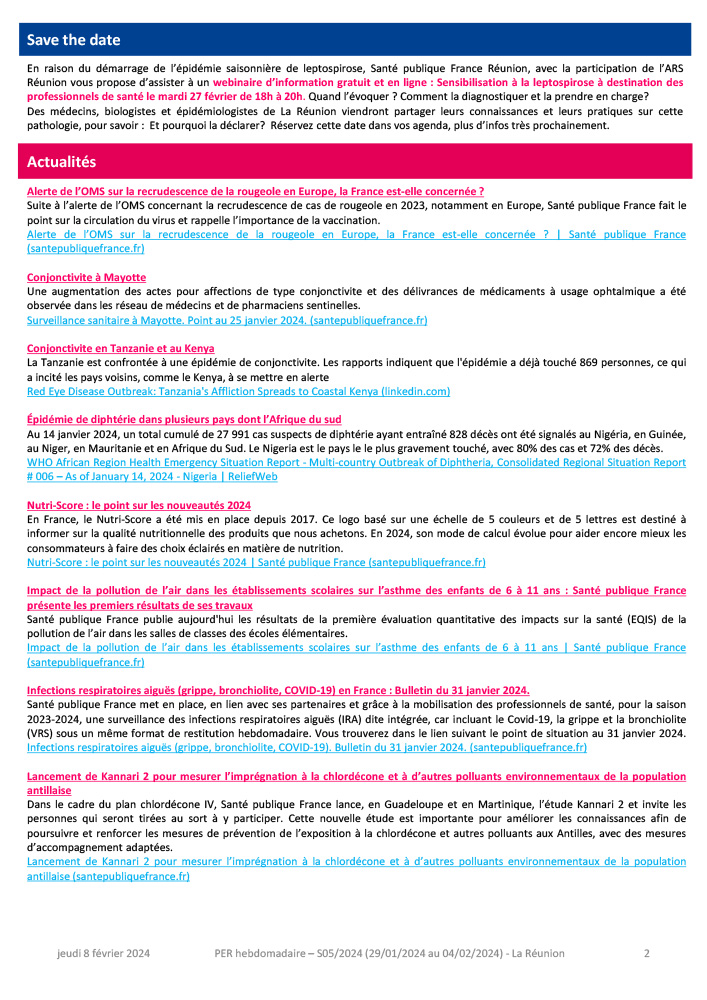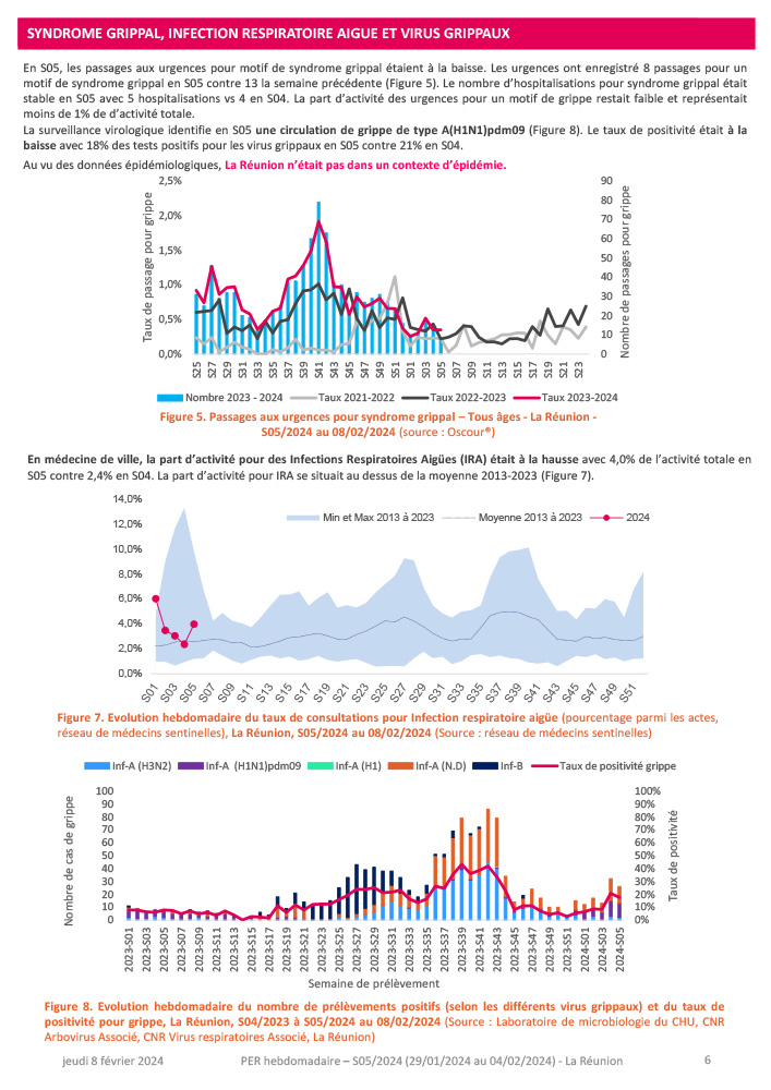 Vous trouverez en pièce-jointe le point épidémiologique régional de la Réunion pour la semaine 05 (du 29/01 au 04/02/204).