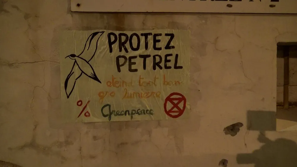 A partir de ce lundi 17 avril 2023 et jusqu’à la fin de la période entourant la nouvelle lune, les groupes locaux de Greenpeace, XR, Attac et CPLC, mèneront tous les soirs de 19h à minuit, des actions d’extinction de l’éclairage urbain, des enseignes et des panneaux de publicité, afin de préserver les populations de pétrels endémique de notre île.