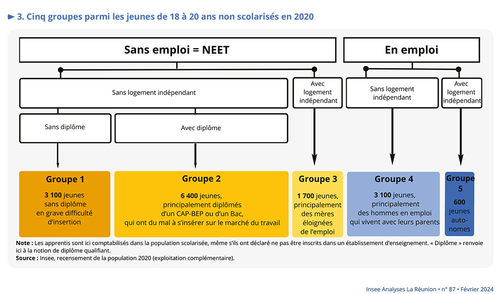 Parmi les jeunes de 18 à 20 ans non scolarisés et sans emploi, 1 700 habitent dans leur propre logement. Ce troisième groupe est peu diplômé, une partie des jeunes ayant probablement quitté le système scolaire