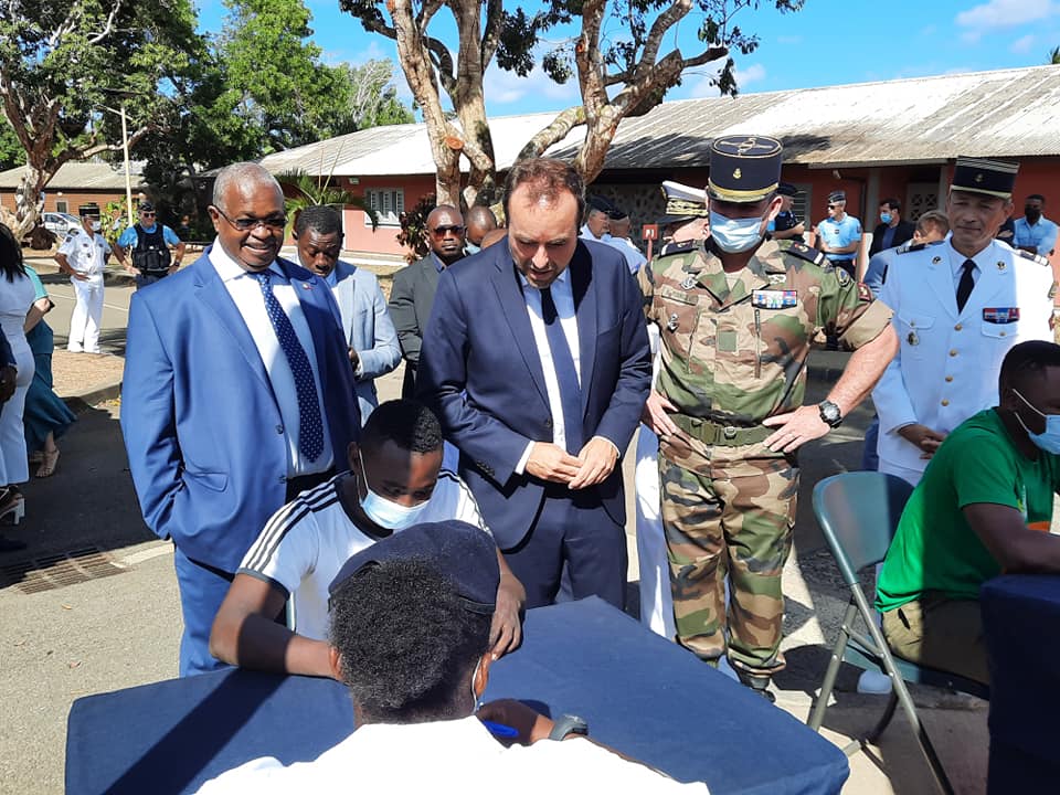 Ce dimanche, le ministre des Outre-Mer Sébastien Lecornu, en présence du président Ben Issa Ousseni, de Zaounaki Saindou conseillère départementale du canton, ont visité le RSMA de Combani.