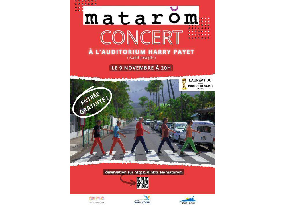 Saint-Joseph : concert gratuit de Matarom à l’Auditorium Harry Payet le 9 novembre
