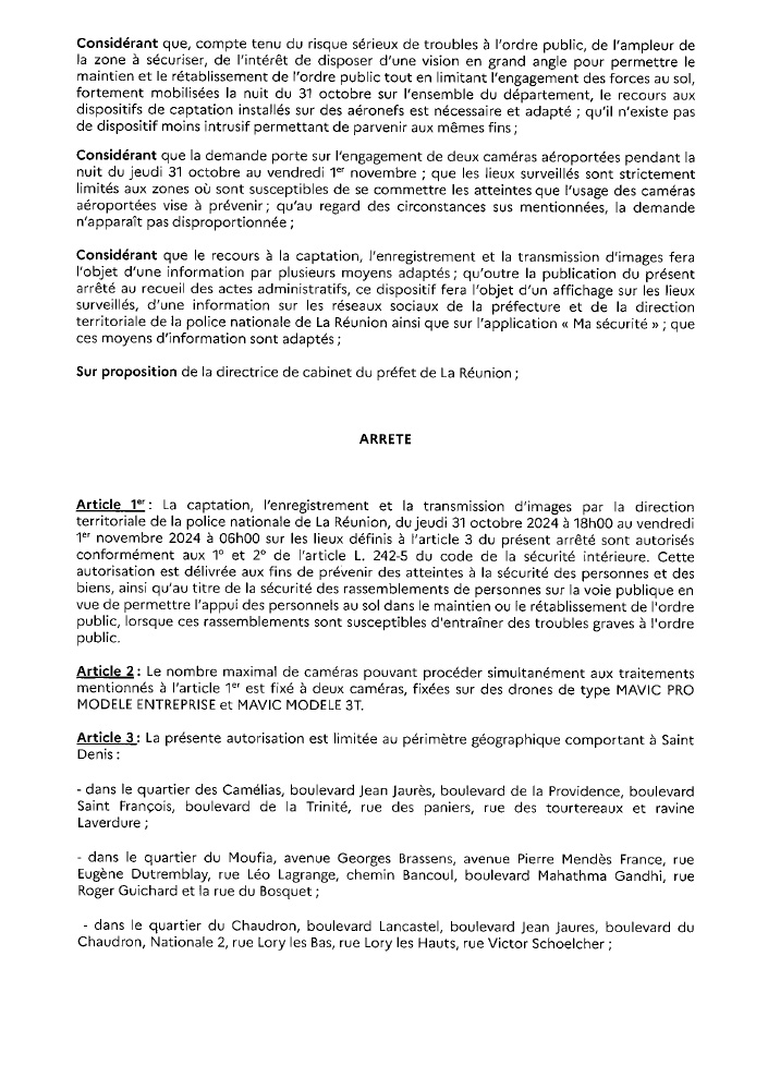 Pour assurer un climat serein pendant ces festivités, un drone du Ministère de l’Intérieur sera déployé dans certains quartiers de la ville de Saint-Denis. Cette initiative vise à renforcer la surveillance et à prévenir d’éventuels incidents.