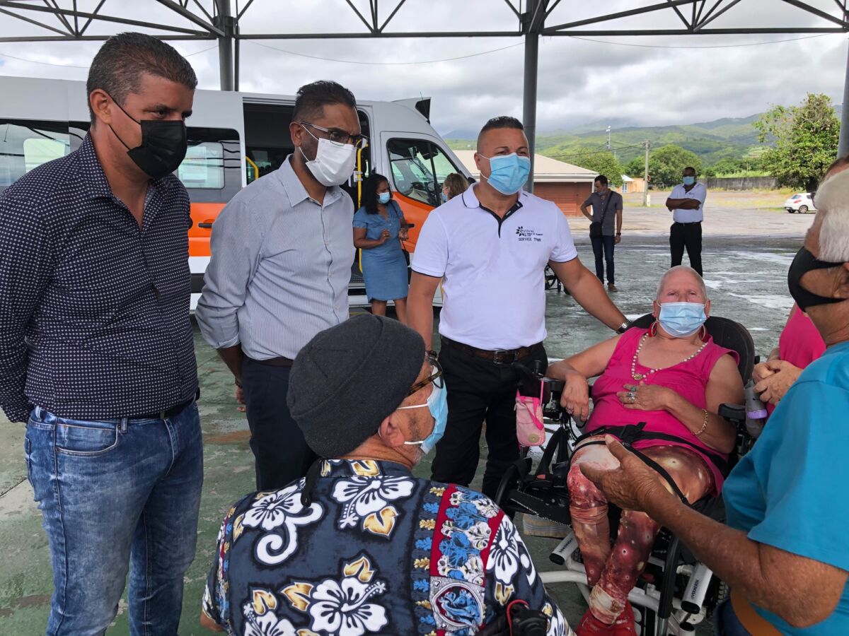 Ludovic Alamélou (à l’extrême gauche sur la photo), lors de la livraison des bus aménagés pour les porteurs de handicap. Une opération de la Cirest. (Photo d’archives Yves Mont-Rouge)