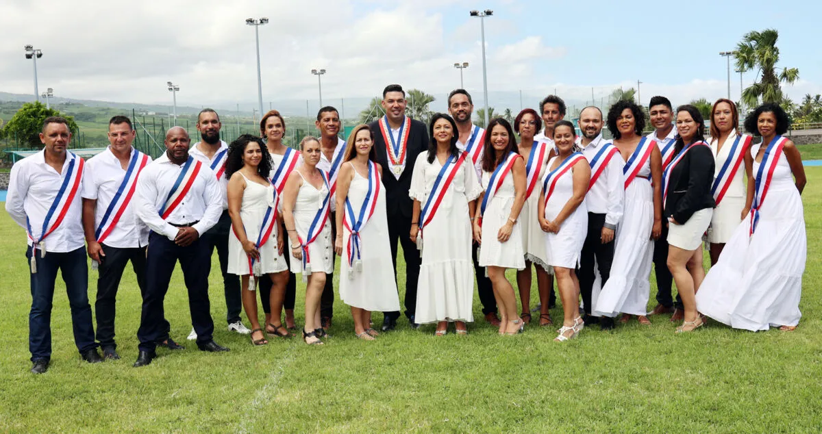 Isaline Tronc (à la droite du maire Mathieu Hoarau) en compagnie des élus de la majorité municipale de l’Etang-Salé.
