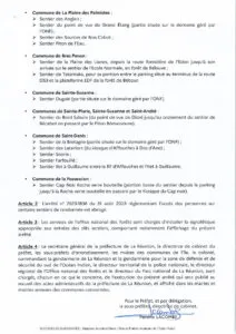 Arrete n°2023-1874 du 5 septembre 2023 portant fermeture du sentier Dassy Bras de Pontho (commune de l’entre deux)-3 par Céline Hardelain 7 septembre 2023 1 min de lecture Ne manquez pas toute l’actualité de La Réunion ! Abonnez-vous à la newsletter de Free Dom ! Valider Partager Facebook Twitter Pinterest Linkedin Whatsapp Reddit Email Céline Hardelain Laisser un commentaire Annuler la réponseYour email address will not be published. Enregistrer mon nom, mon e-mail et mon site dans le navigateur pour mon prochain commentaire. Current ye@r * Leave this field empty Articles récents... Jeudi 1ᵉʳ janvier 2026 – Météo, éphéméride et horoscope du jour Mercredi 31 décembre 2025 – Météo, éphéméride et horoscope du jour Hommage à Johnny Hallyday sur Free Dom 2 ce 5 décembre Mardi 30 décembre 2025 – Météo, éphéméride et horoscope du jour Saint-Joseph : découverte de 2337 plants de cannabis, arrestation de 2 individus Point sur le réseau routier départemental, 29 décembre à 16H30 Suicide sur le pont de la Rivière d’Abord : importante mobilisation des secours et des forces de l’ordre Radier submergé à Ilet Furcy : la route de Cilaos fermée à la circulation cette nuit Fortes pluies : appel à la plus grande prudence à Saint-Paul Saint-Gilles-les-Bains : une route impraticable, les riverains montent au créneau (VIDEOS)