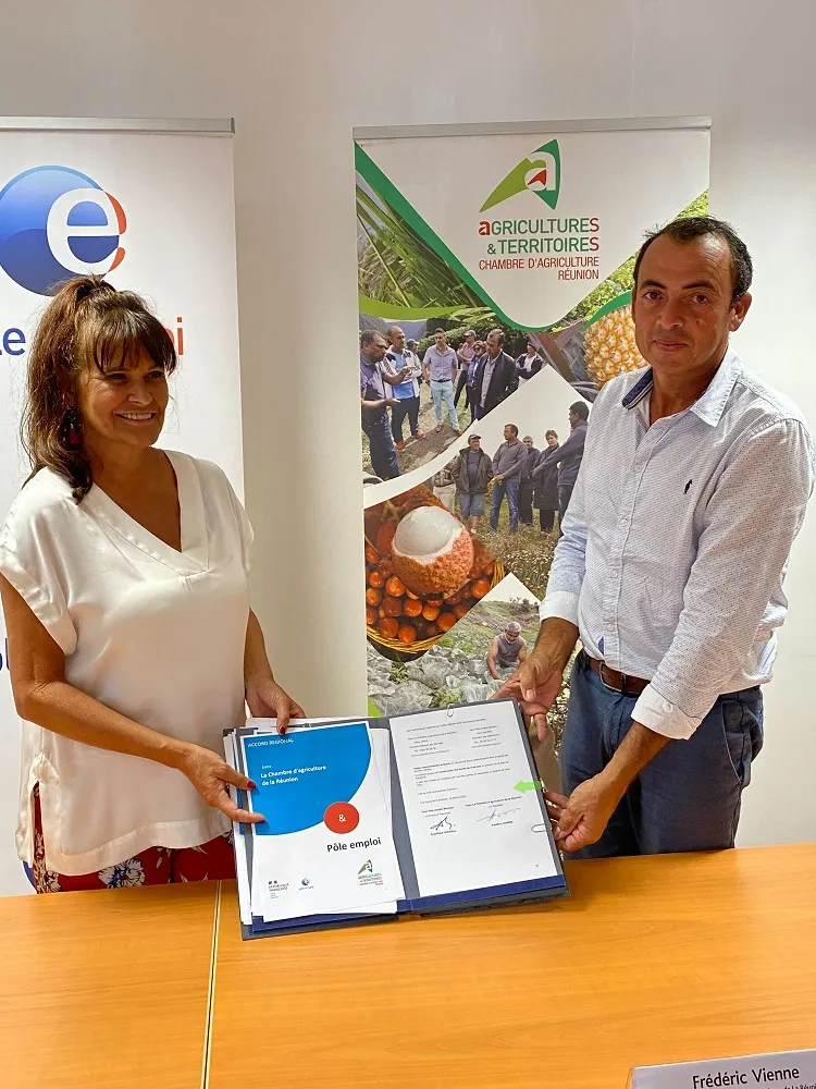 Ce mercredi 8 février a été signée une convention en présence d’Angélique Goodall directrice régionale de Pôle emploi Réunion et Frédéric Vienne président de la Chambre d’agriculture de La Réunion. L’objectif de cette convention est de renforcer l’attractivité du secteur agricole, le développement économique des entreprises et le reclassement des demandeurs d’emploi.