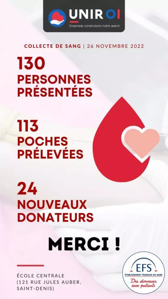 Afin d’inciter les habitants du centre – ville du chef-lieu à se mobiliser pour le don de sang, UNIR OI et l’Etablissement Français du Sang se sont unis pour mener des actions conjointes de sensibilisation et de collecte depuis 2014. Ce samedi, ils ont procédé à une signature d’une convention qui a pour vocation d’asseoir le partenariat entre les deux entités et de travailler sur de nouvelles actions autour de la problématique des Sangs Rares entre autres.