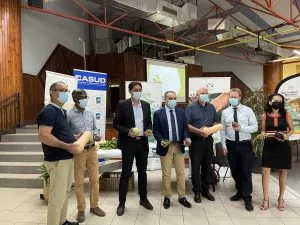 Aux côtés de la Ville et de l’État, d’autres partenaires étaient présents pour agir en commun et ont signé la charte d’engagement sur le Pôle Territorial de Coopération Économique (PTCE) : le Président de la Chambre d’Agriculture, Frédéric Vienne qui a salué l’initiative de la commune et affirmé le soutien de la Chambre verte. L’élu régional Jean-Bernard Maratchia co-signataire, a confirmé l’engagement de la Région Réunion en faveur du projet exemplaire que porte l’Entre-Deux. Tous les co-signataires, le Vice-président de la CASUD, la DDAF, le Département, la Banque des Territoires, la CRESS, la SAFER, les Alchimistes péi, Laurent Dennemont du Réseau Composte Citoyen, les associations de l’Entre-Deux, une 20aine d’agriculteurs de la commune ont été unanime sur la pertinence du projet porté et de belles perspectives d’avenir durable.