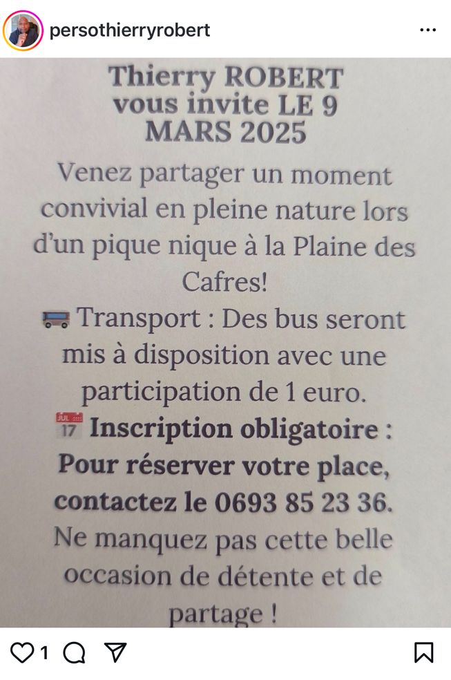 Il travaille maintenant dans un lycée à Sainte-Anne, recruté par la Région Réunion. J’ai vu aussi la vidéo qu’il a postée sur son Facebook pour expliquer que son recrutement par la Région n’a rien à voir avec « un piston ». C’est tout simplement parce qu’il avait réussi son entretien. Je le crois sur parole. Vous aussi, n’est-ce pas ? Ben oui, la chance le chien lé pas la chance le chatte ! Suis vraiment content pour Bryan, ce militant actif des « Jeunes engagés bénédictins » qui milite pour que Ratenon devienne maire. Un chômeur en moins !