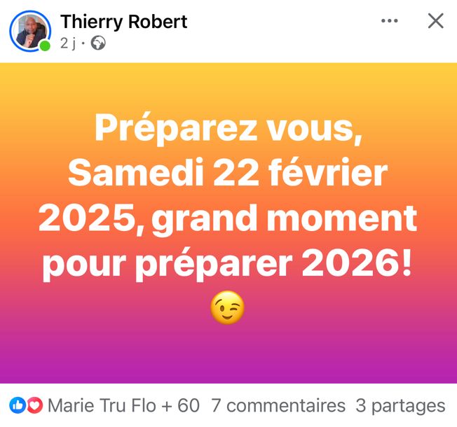 En parlant des municipales, Thierry Robert ne sait plus quoi faire pour attirer l’attention. Nous ne sommes qu’en février 2025, les élections auront lieu en mars 2026. Encore un an à tenir le rythme. Tiendra-t-il le coup ? Je trouve qu’il a dégainé un peu trop tôt, mais ça n’engage que moi ! Ses posts Facebook en disent long sur son état d’esprit. Il est vraiment pressé d’en découdre avec Bruno Domen. Jugez-en vous-mêmes !