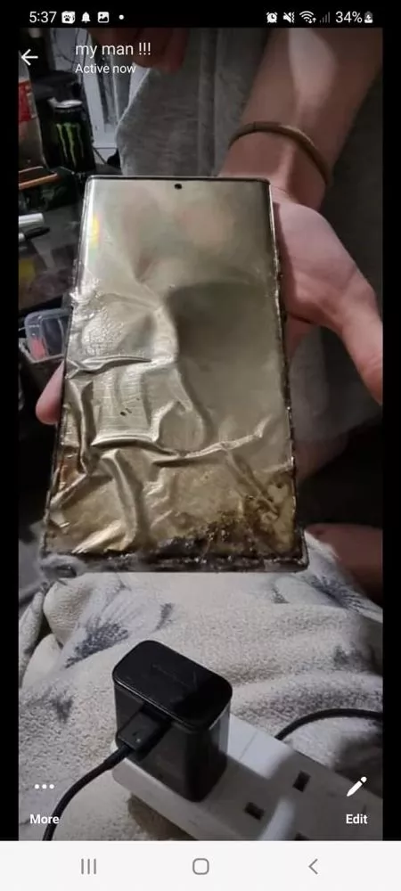 Voici la publication de Kyomi sur les réseaux sociaux : « Quelle putain de matinée, réveillé à 4h30, mes cheveux étaient en feu, mon armoire et mon oreiller. Nous avons réussi à arrêter le feu en 30 minutes. N’achetez pas le nouveau Samsungs222 ultra. J’ai brûlé mes putains de mains. Cela pourrait être pire si je ne m’étais pas réveillé ….. (il n’était même pas en charge) »