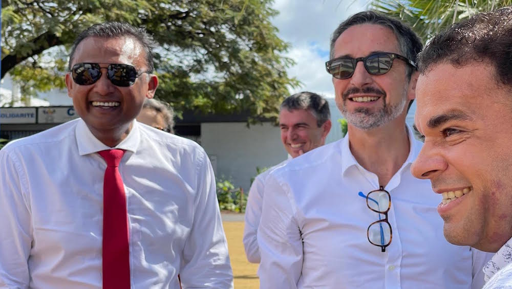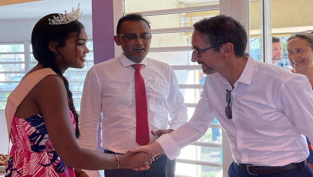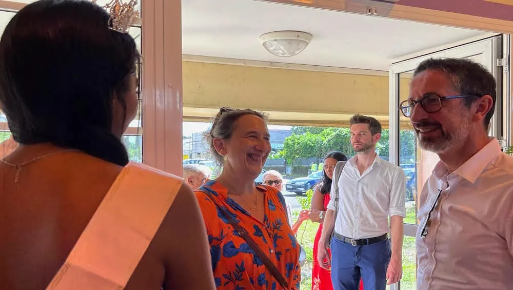 Le préfet de la Réunion a été accueilli devant la salle ADP par le maire Jeannick Atchapa et les élus du conseil municipal de Bras-Panon ainsi que par le curé de la ville.